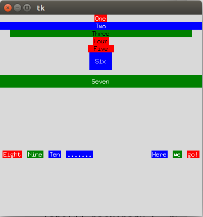 With the pack layout manager, a widget’s precise position on screen need not be specified. A widget can be displayed on the screen by simply using the widget.pack() command, where in the brackets, one can also specify additional display options, as in the example below.